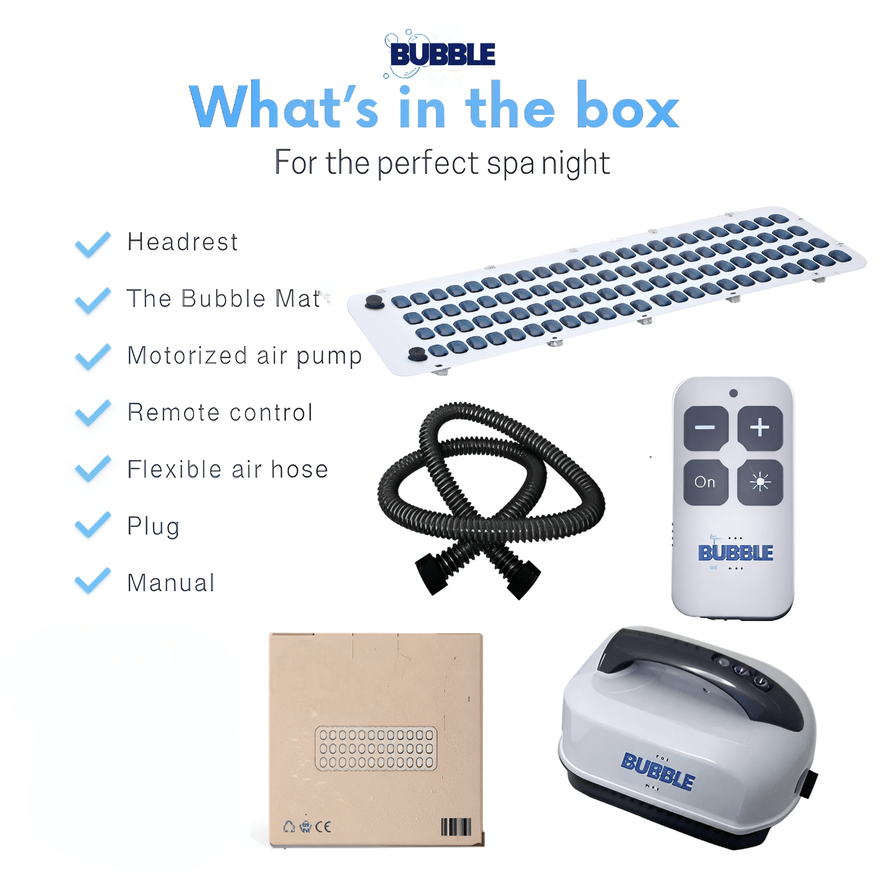 Say goodbye to sore muscles and long days. Just place The BubbleMat™ in your tub, press a button, and let waves of warm bubbles melt away stress.