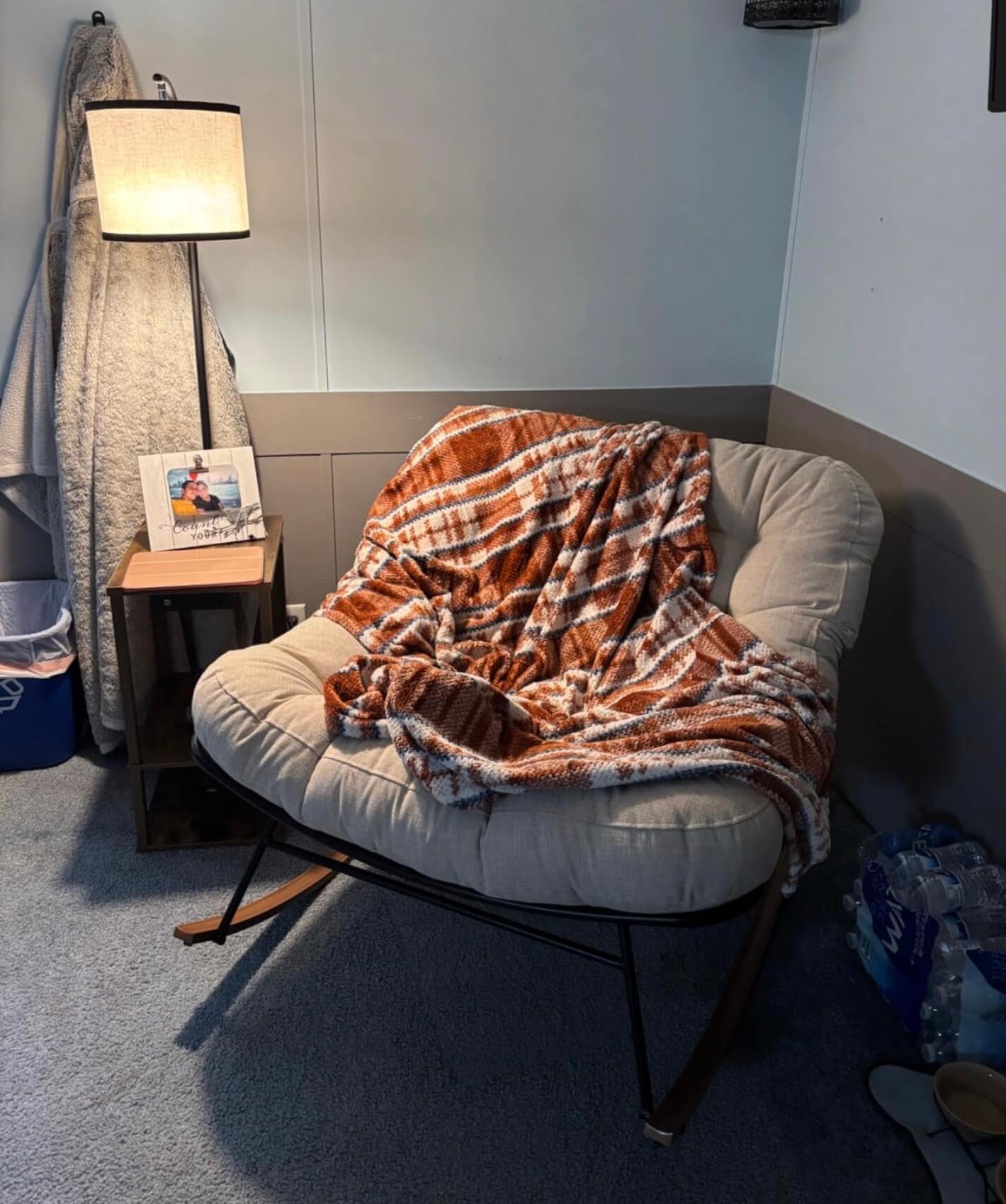 You’ll receive the oversized rocking chair frame, plush cushion, all assembly hardware, clear instructions, and a FREE cozy throw blanket (limited-time bonus).