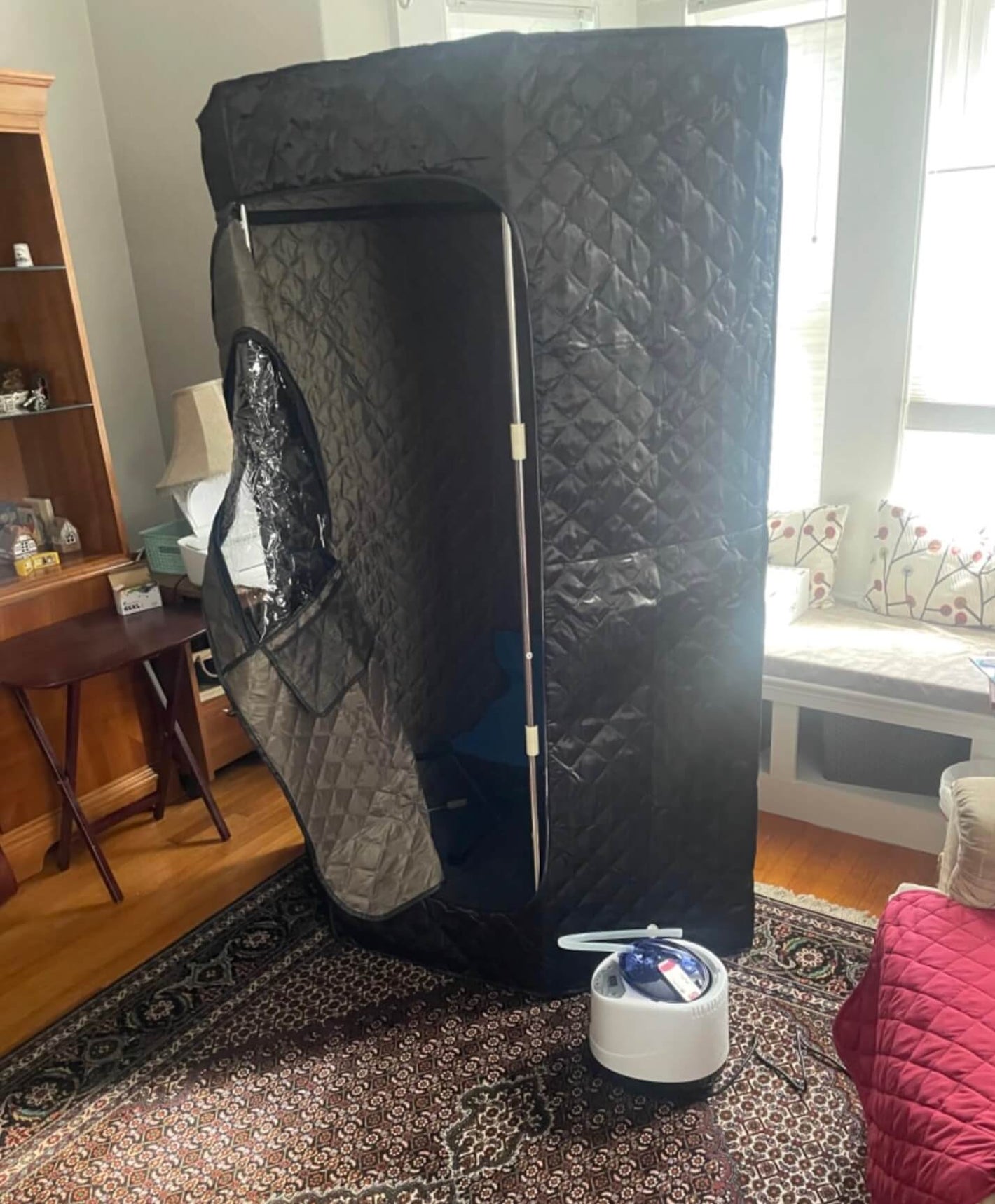 Yes! The sauna can be assembled in minutes — no tools needed. It’s lightweight, foldable, and easy to store when not in use.